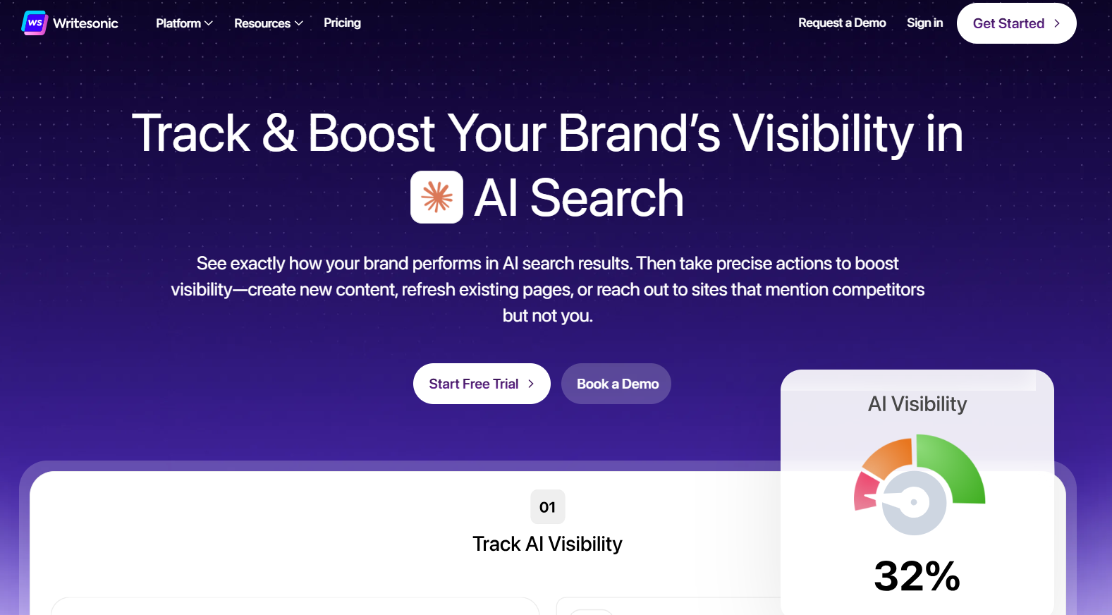 Writesonic is an AI-powered marketing platform that helps businesses create content, improve SEO performance, and increase brand visibility across digital channels. It combines AI writing tools with marketing and optimization features designed for modern content teams.