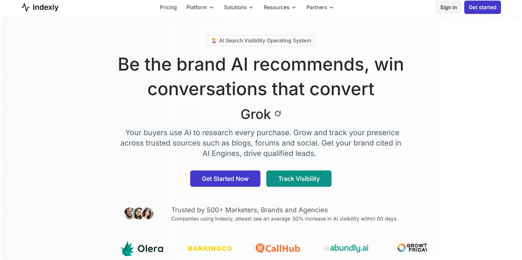 Indexly, on the other hand, is an AI search visibility platform for brands, agencies, and enterprises that also supports guided content creation. It helps you not only create content but also ensure that content is optimised to get discovered and cited in AI-generated answers.