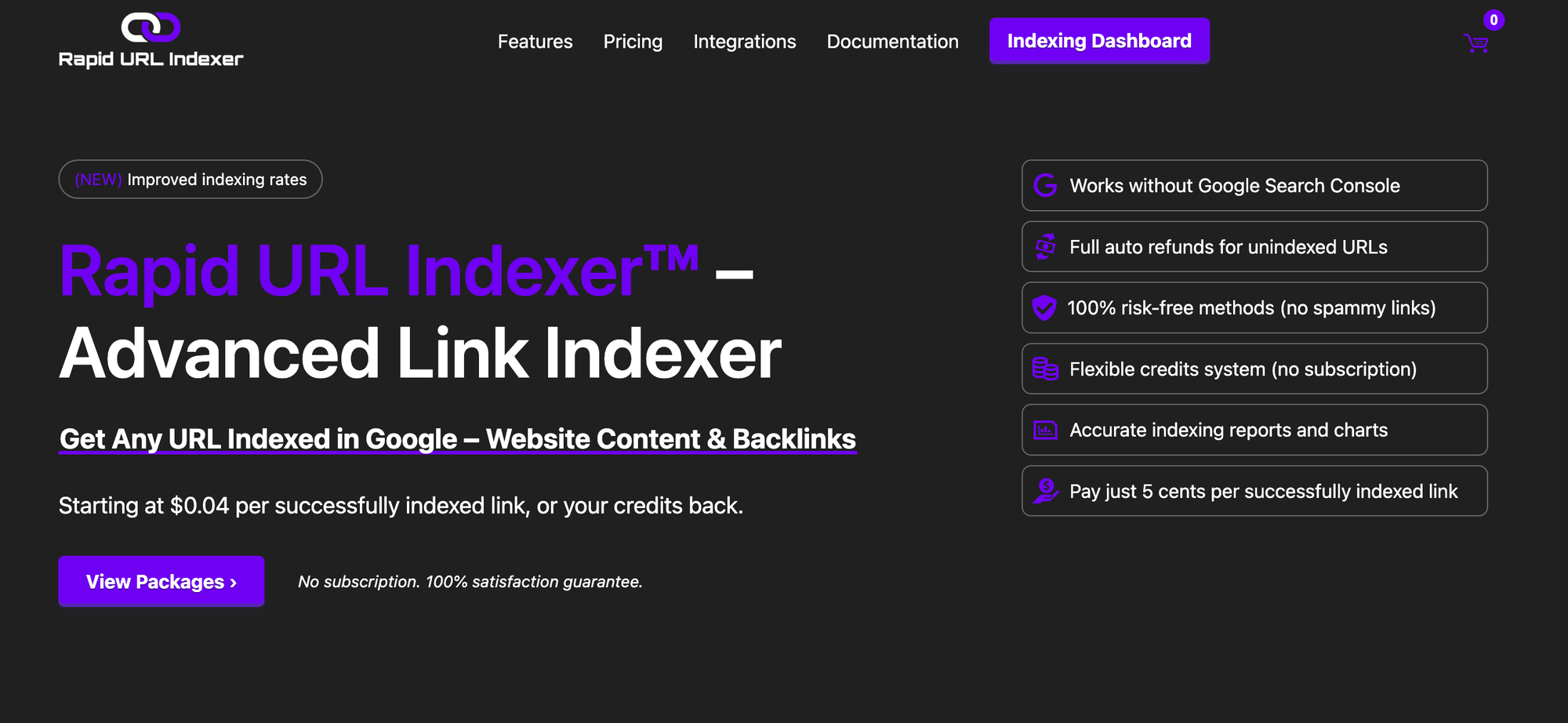- 100% credit auto-refund for URLs not indexed within 14 days.